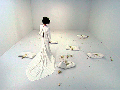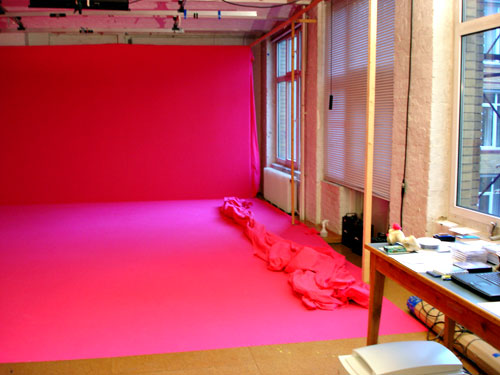 Umsetzung von Bühnenbildern in farbigen sowie bedruckten Textilien nach Entwürfen und für Inszenierungen der Foto- und Videokünstlerin Brigitte M. Mayer.