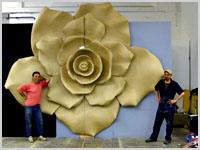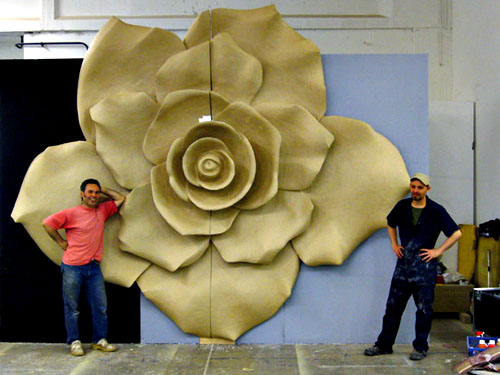 Anfertigung überdimensionaler Rosen für die Berliner Benefiz-Veranstaltung »Rosenball« im Team von Hans Bernhard.