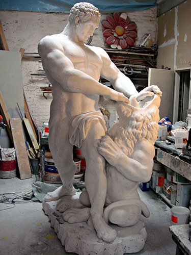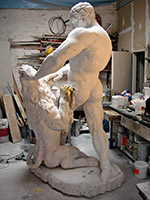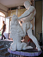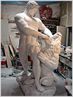 Kopie der Fontänen-Skulptur »Samson reißt dem Löwen den Rachen auf«, St. Petersburg. Russischer Pavillon in Saragosa, hergestellt im Atelier Joost van der Velden.